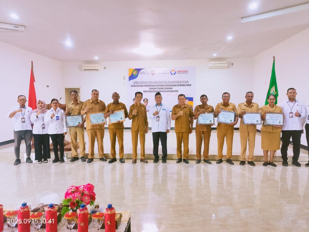 Dobo-Diskominfo. Wakil Bupati Kepulauan Aru Drs.Mohammad Djumpa M.Si membuka secara resmi acara Sosialisasi dan Pendampingan Kepatuhan Penyelenggaraan Pelayanan Publik Terhadap Standar Pelayanan dan Penganuhgerahan Hasil Penilaian berupa pemberian piagam penghargaan pada Pemerintah Kabupaten Kepulauan Aru yang di selenggarakan oleh Bagian Organsasi Sekretariat Daerah yang bekerjasama dengan Ombudsman Republik Indonesia Perwakilan Maluku di lantai II gedung […]