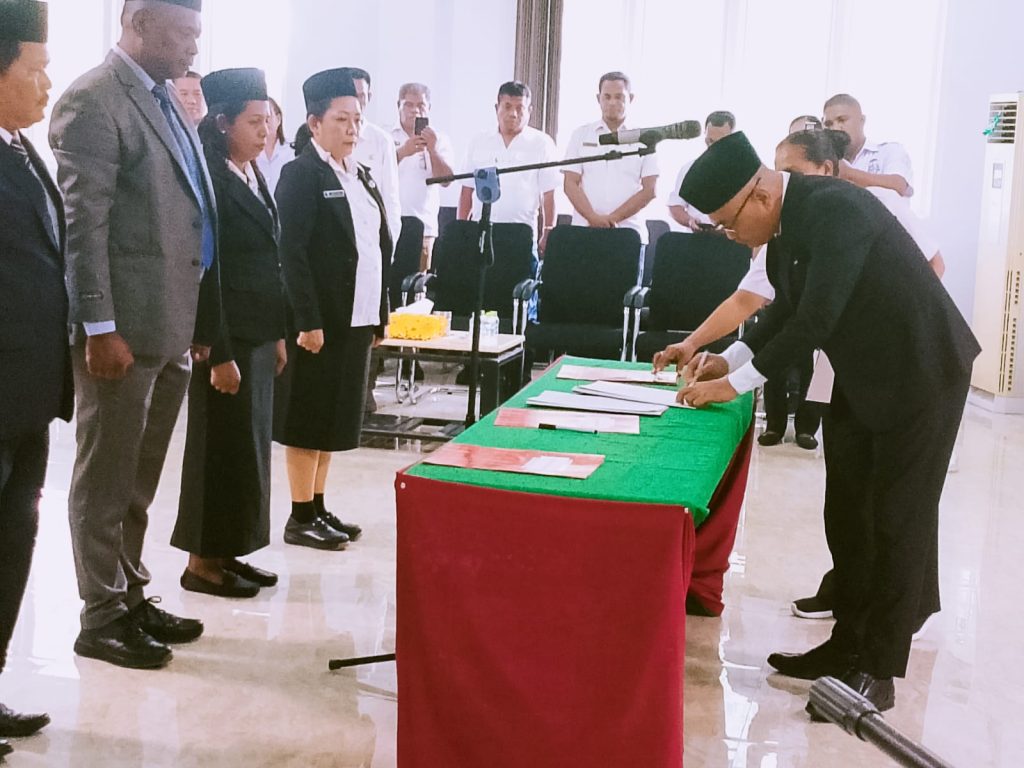 Dobo-Diskominfo.Pemerintah Kabupaten Kepulauan Aru melaksanakan pengambilan sumpah dan serta pelantikan dalam jabatan administrator dan pengawas terhadap 82 Aparatur Sipil Negara (ASN) dilingkungan Pemerintah Kabupaten Kepulauan Aru. Acara pelantikan tersebut dipimpin langsung oleh Bupati Kepulauan Aru Timotius Kaidel dan berlangsung di lantai II gedung Badan Pengelola Keuangan dan Aset Daerah (BPKAD) Kabupaten Kepulauan Aru, Selasa (14/1/2026). […]
