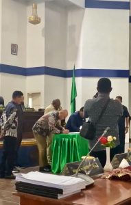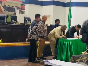 Pada Kesempatan tersebut Bupati Kabupaten Kepulauan Aru Timotius Kaidel bersama pimpinan DPRD Kabupaten Kepulauan Aru melakukan penandatanganan nota kesepakatan persetujuan bersama atas Program Pembentukan Peraturan Daerah tahun 2025.