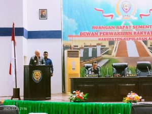 Dobo-Diskominfo. Bupati Kabupaten Kepulauan Aru Timotius Kaidel dan Wakil Bupati Kepulauan Aru Drs Mohammad Djumpa M.Si menghadiri penutupan Masa Persidangan ke-II dan membuka Masa Persidangan ke-III DPRD Kabupaten Kepulauan Aru Tahun Sidang 2024–2025. acara tersebut digelar di gedung Sita Kena ruang sidang paripurna sementara Dewan Perwakilan Rakyat Daerah (DPRD ) Kabupaten Kepulauan Aru Dobo Jumat (25/7/2025)